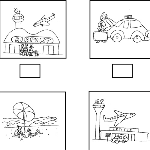 Matěj s celou rodinou se vypravili k moři. Celou cestu si Matěj zapisoval a kreslil do bloku, ale stránky se mu v mořském větříku rozlétaly. Zkuste obrázky seřadit tak, jak patří za sebou.